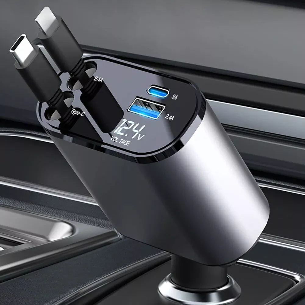 4-in-1 USB Car Fast Charger with PD QC3.0 & Digital Display