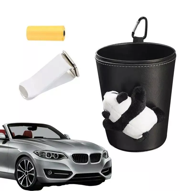 Compact Panda Car Trash Can & Organizer: Leak-Proof, Versatile, & Stylish
