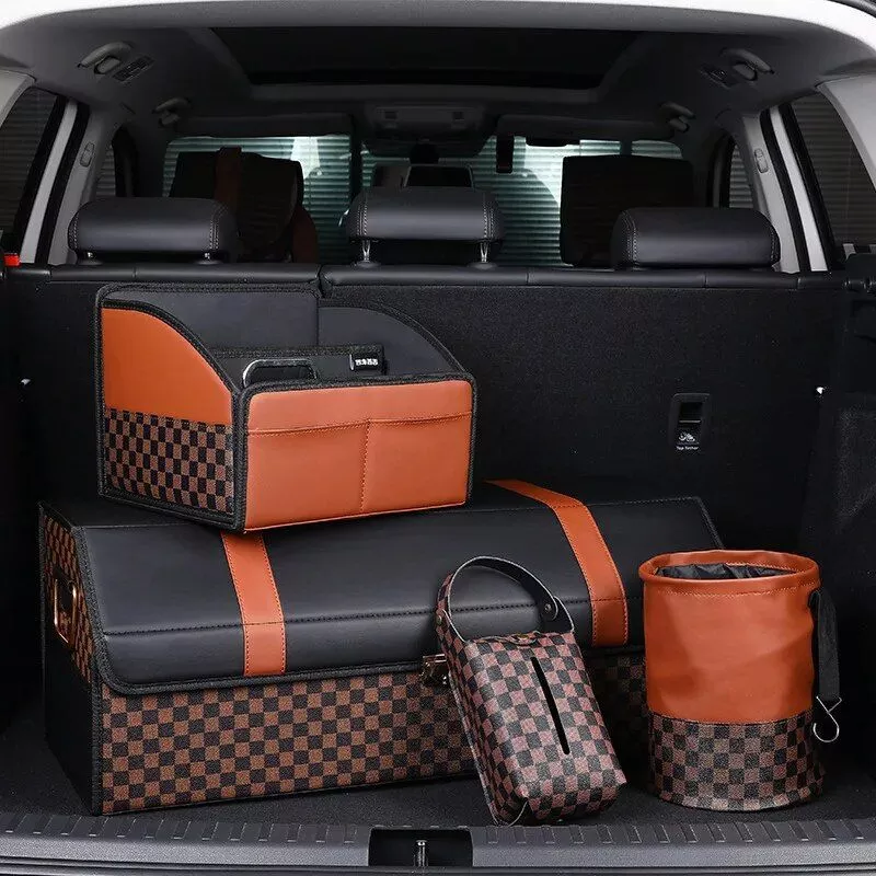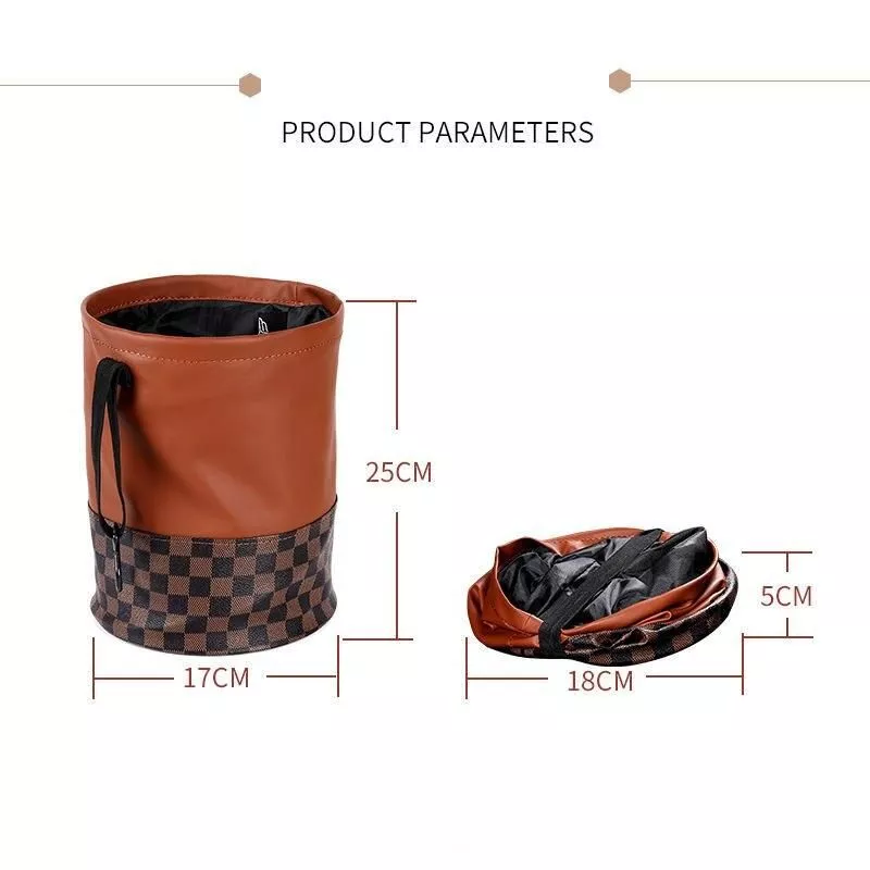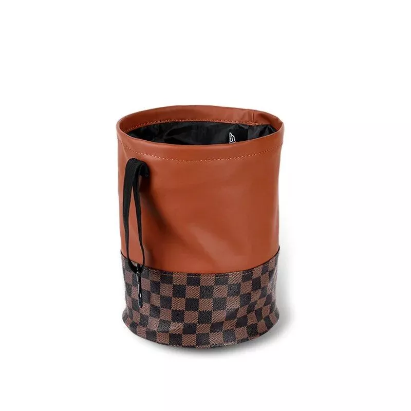 Experience a fusion of style and function with our Luxurious Leather Car Trash Can. Designed for modern vehicles and sophisticated users, this sleek waste disposal solution effortlessly combines convenience with class. Crafted from high-quality Napa checkered leather, this foldable car wastebasket promises durability and elegance in one compact package.