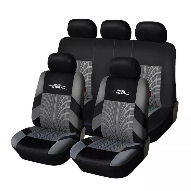 Universal Fit Embroidered Car Seat Covers with Tire Track Detail