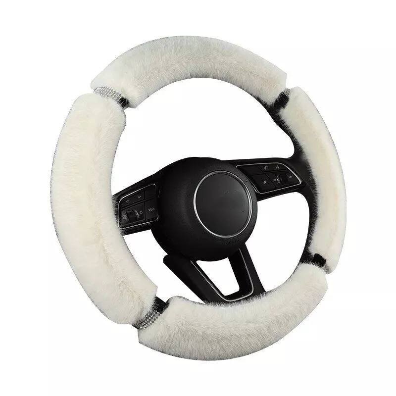Luxury Anti-Slip Suede Fur Diamond Steering Wheel Cover