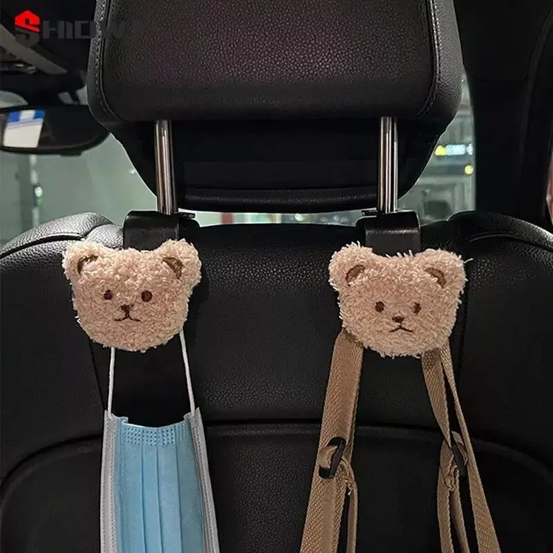 Package Included: 1PC Creative Car Seat Back Cute Plush Bear Doll Hook Inside Car With Decorative Plastic Pendant Finishing Storage Hooks